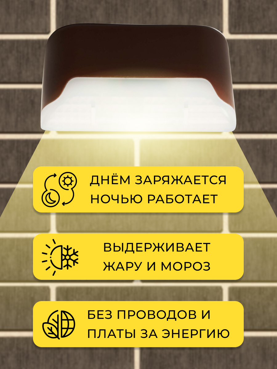 Светильник садово-парковый на солнечной батарее, серии «Solar», (ДБУ) Solar LED MP101 0.1W, IP44, цвет коричневый, прямоугольник, накладной, 80*15*45мм